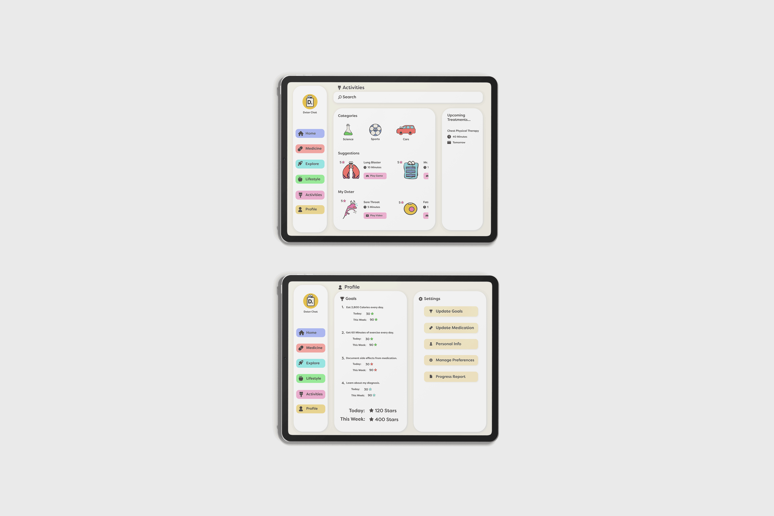 Designed the user experience and interface for My Dxter, a conceptual platform that helps children with chronic illnesses understand their diagnosis and build independence through interactive learning tools.